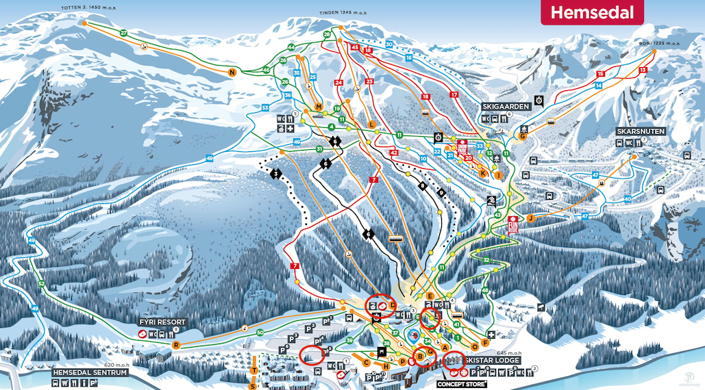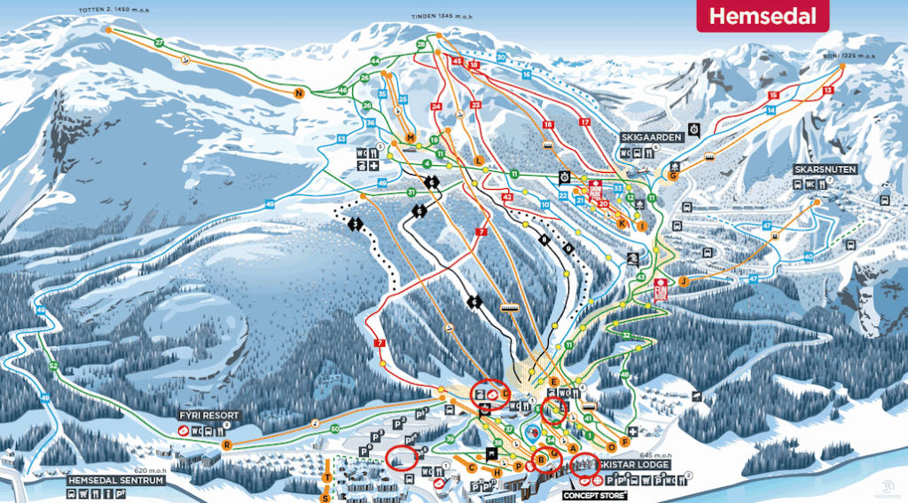 Här hittar du även kartor över de olika områden som finns i Hemsedal.
